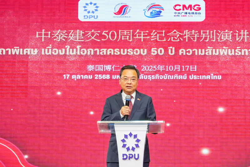 เอกอัครราชทูตจีน ปาฐกถา ความสัมพันธ์ไทย–จีน กับธรรมาภิบาลโลก ในงานของสมาคมผู้สื่อข่าวไทย-จีน สถาบันสื่อและบริหารธุรกิจไทย-จีน มหาวิทยาลัยธุรกิจบัณฑิตย์ (DPU) และ China Media Group (CMG)