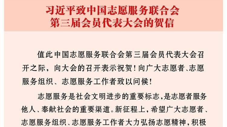 สี จิ้นผิง ส่งสารยินดีจัดประชุมสมัชชาผู้แทนสมาชิกสมาพันธ์อาสาสมัครจีนชุดที่ 3